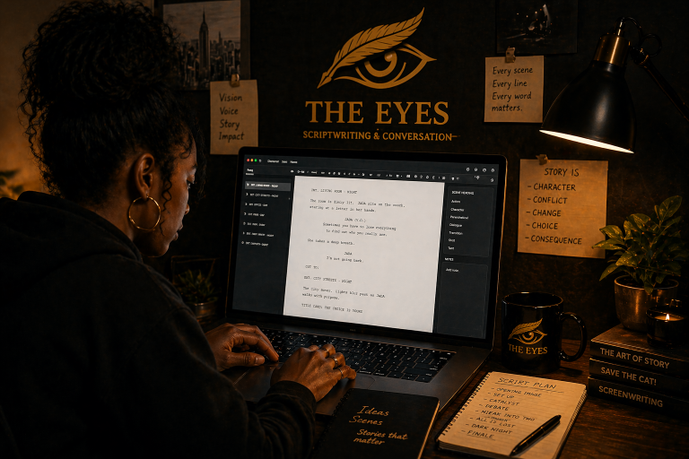 The Eyes is where ideas are refined, stories are shaped, and vision becomes voice. Specializing in scriptwriting, concept development, and creative direction, we bring clarity and precision to every project we touch. From early-stage ideas to fully developed narratives, The Eyes ensures each story is intentional, impactful, and built to resonate.